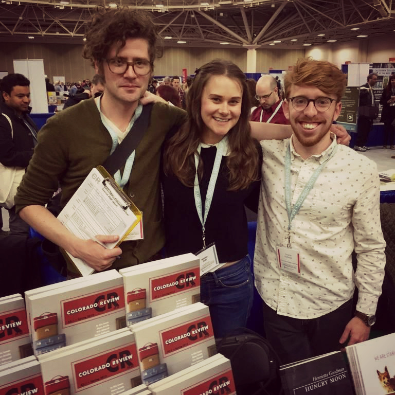 CLP interns at AWP 2015 April 21, 2015 768 × 768 CLP interns at AWP 2015 Colorado Review Managing Editor Drew Webster, with Center for Literary Publishing interns Melissa Hohl and Neil FitzPatrick at AWP