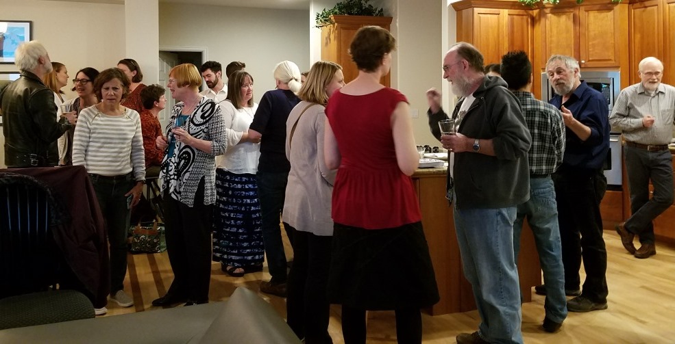 As promised, department faculty and graduate students gathered with fine appetizers and drinks in hand.