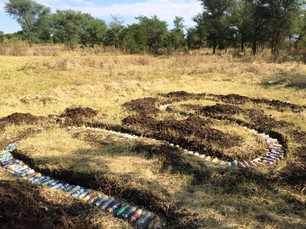 Ecobricking to create a compost bin.